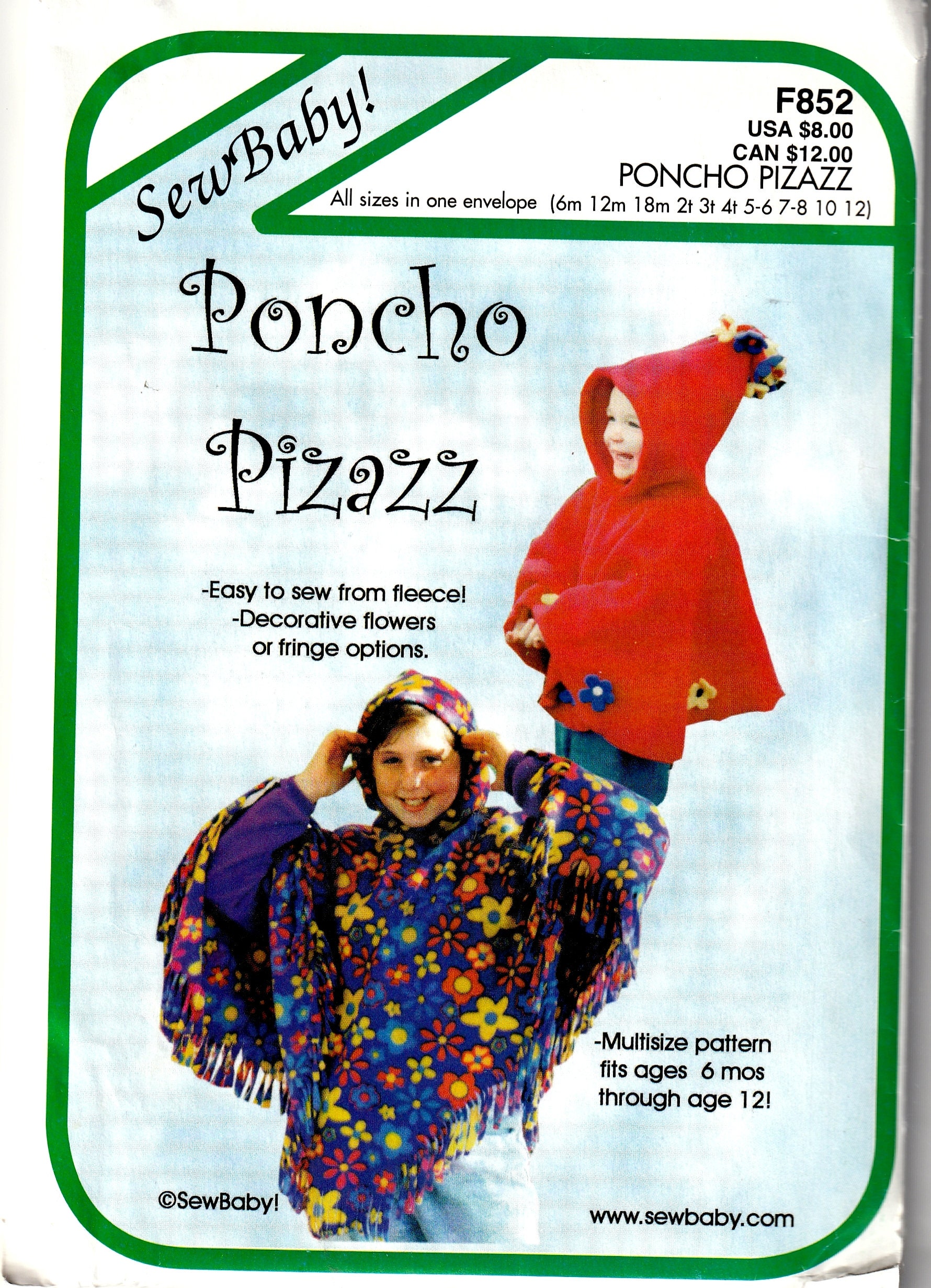Sewing Pattern Sewbaby F852 Children S Poncho Size 6m 12 Etsy